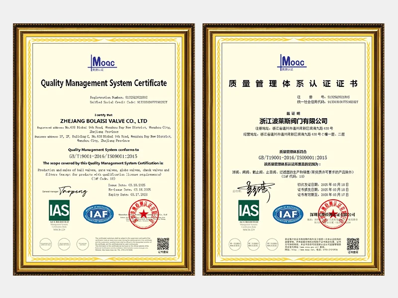 Zhejiang Bolaisi Valve Co., Ltd. oferece produtos padrão e personalizados. Podemos fabricar diversos produtos de acordo com desenhos ou amostras do cliente. Iremos nos comunicar com você detalhadamente durante os estágios iniciais. Após a confirmação do produto, forneceremos uma amostra ao cliente antes da produção. Somente após o cliente aprovar a amostra é que daremos continuidade à produção. Durante o processo de fabricação, controlamos rigorosamente a qualidade do produto e quaisquer problemas de qualidade serão resolvidos imediatamente. A qualidade e a eficiência dos produtos de nossa fábrica estão consistentemente entre as melhores do setor.